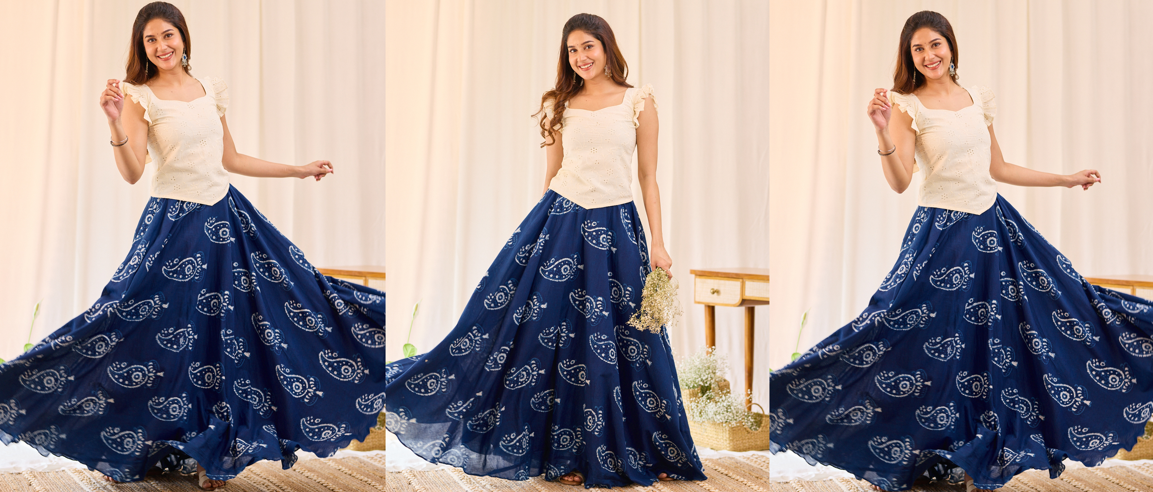 Indigo Blue A - line Free style Hand-block Top with Palazzo Pant