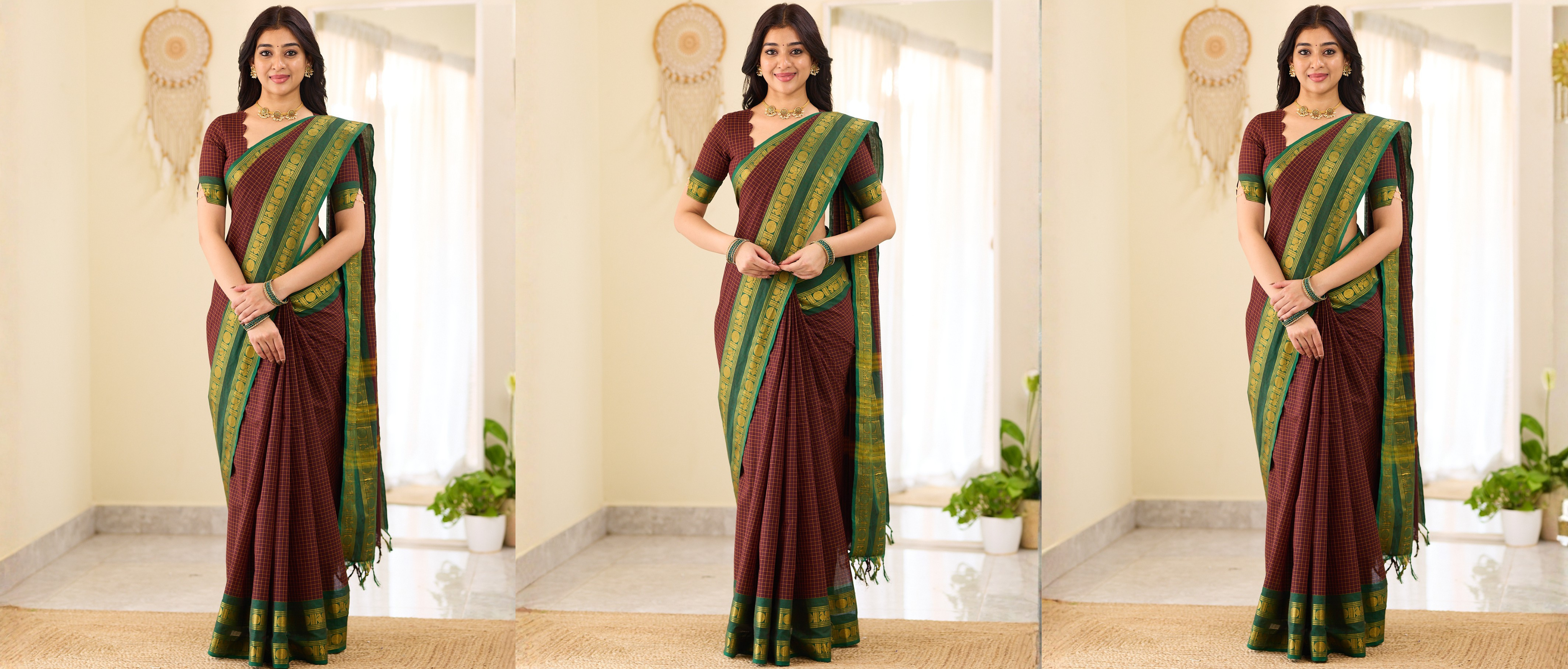 Thenmozhi Exclusive - Mangalagiri Black Cotton Saree