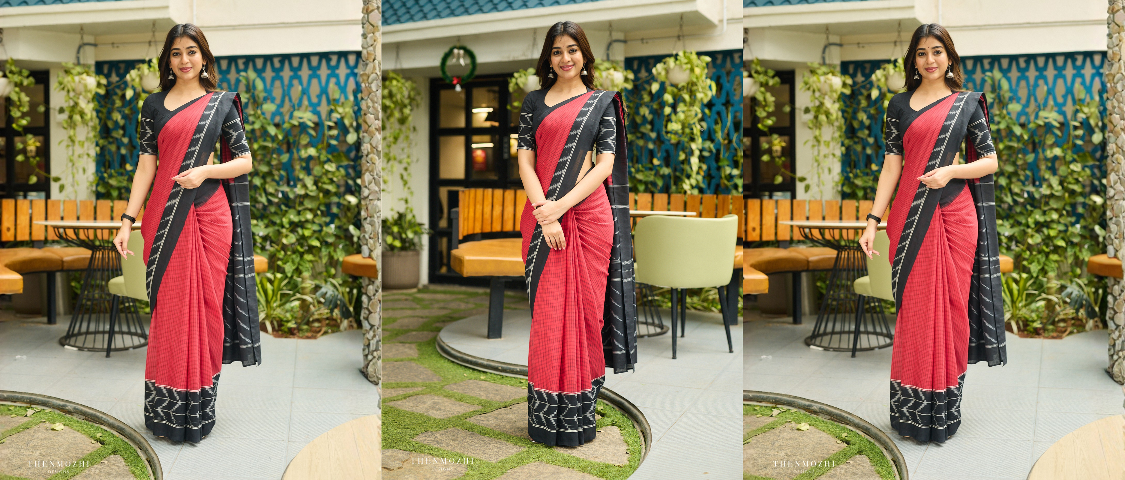 Deep Red & Midnight Black Ikat Cotton Saree