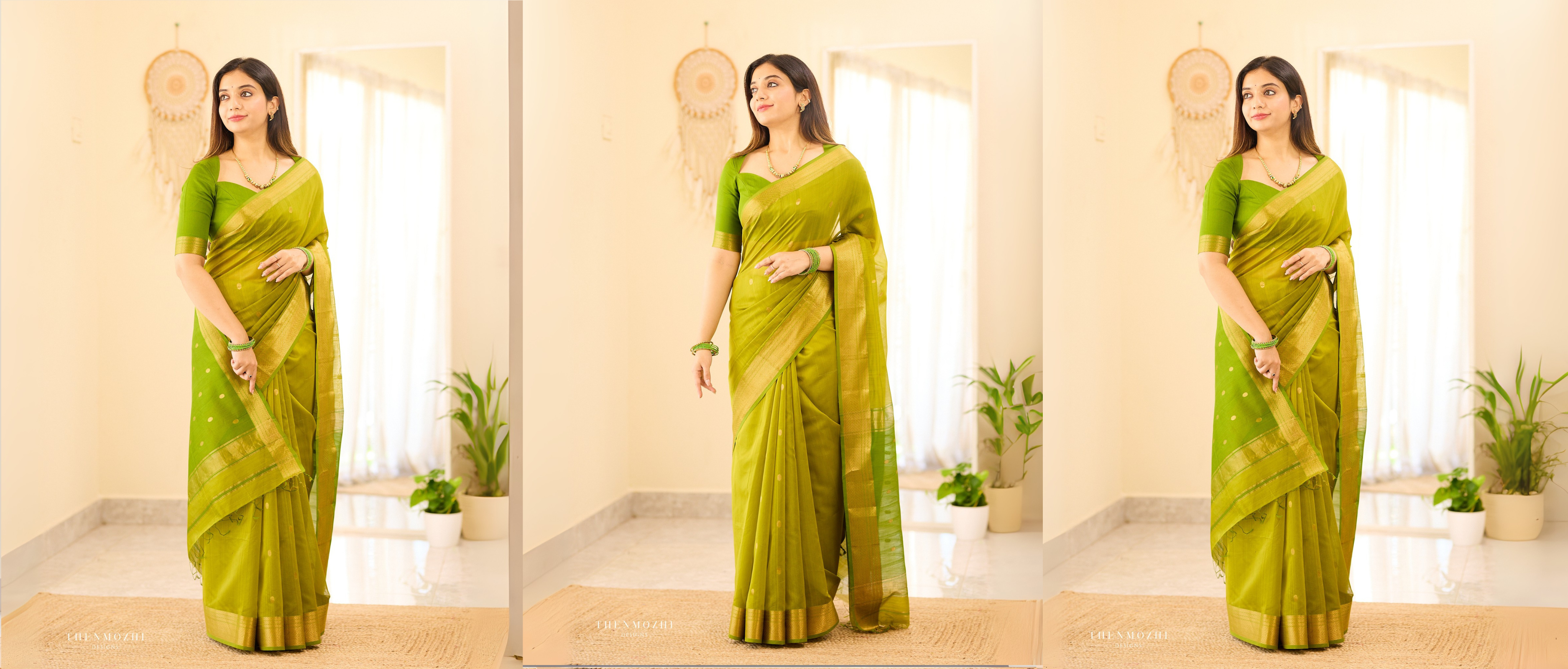 Leafy Green checked Maheshwari silk cotton saree