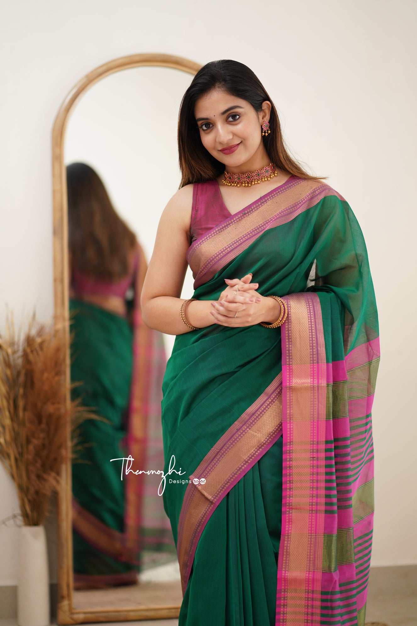 Diva (Green) Maheshwari Silk Cotton Handloom Saree